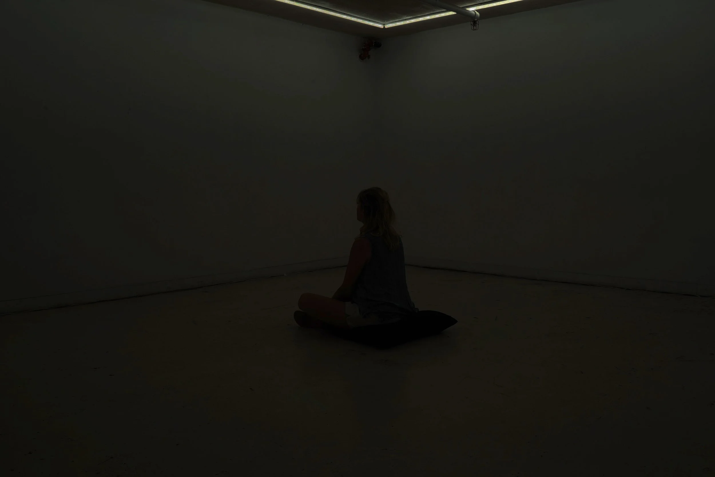 INSTALLATION TITLE: MEDITATION #1 The Installation invites the participant to join an atmospheric meditation connecting with themselves and the present through Light and Sound